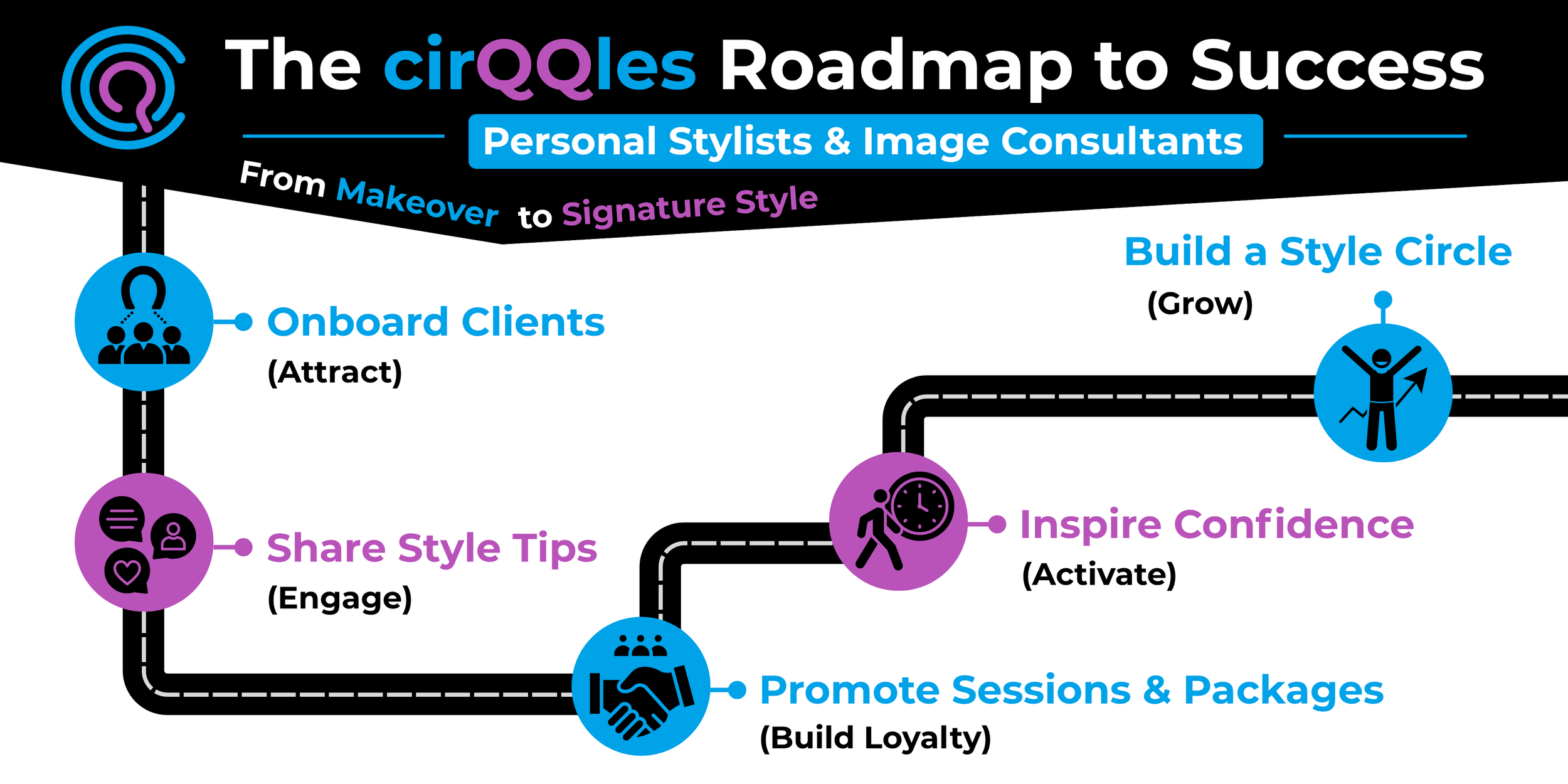 We give you everything you need to attract, engage, and retain clients- all in one place. From automated updates to loyalty & referral rewards, built-in messaging, social media posting, and performance tracking, our Roadmap to Success for stylists and image consultants is built on what actually works: